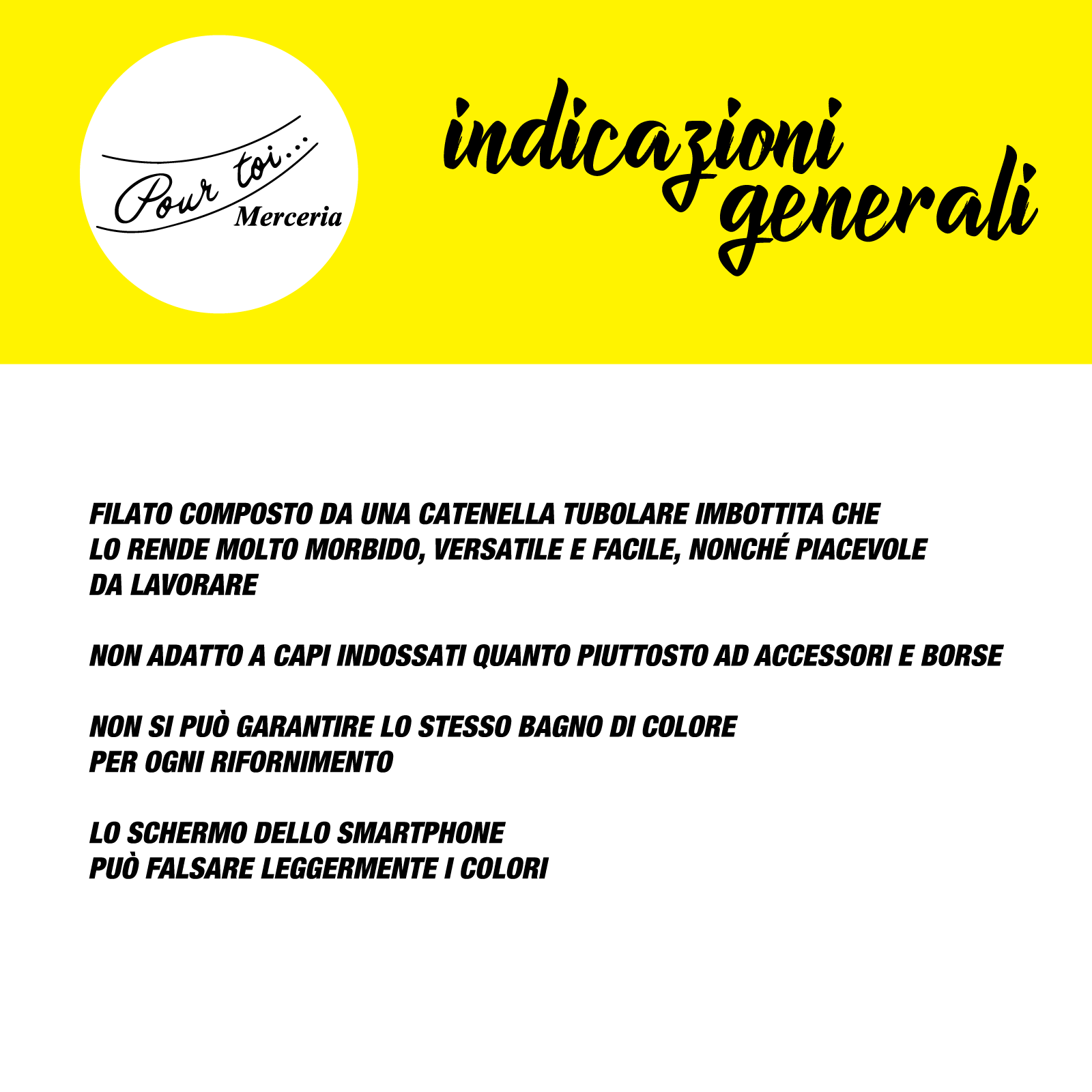 Mantra è un filato composto da una catenella tubolare imbottita che lo rende molto morbido, versatile e facile, nonché piacevole, da lavorare. È un filato non adatto a capi indossati quanto piuttosto ad accessori e borse.