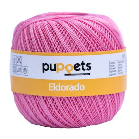 Anchor Puppets Eldorado è un filato per uncinetto a 3 capi composto al 100% da cotone di alta qualità. È Mercerizzato per un aspetto bello e setoso. Questo resistente filato per uncinetto è ideale per abbigliamento e articoli per la casa. Disponibile in 36 colori. Venduto in gomitoli da 50 e 100g. I colori a tinta unita possono essere lavati a 60°.