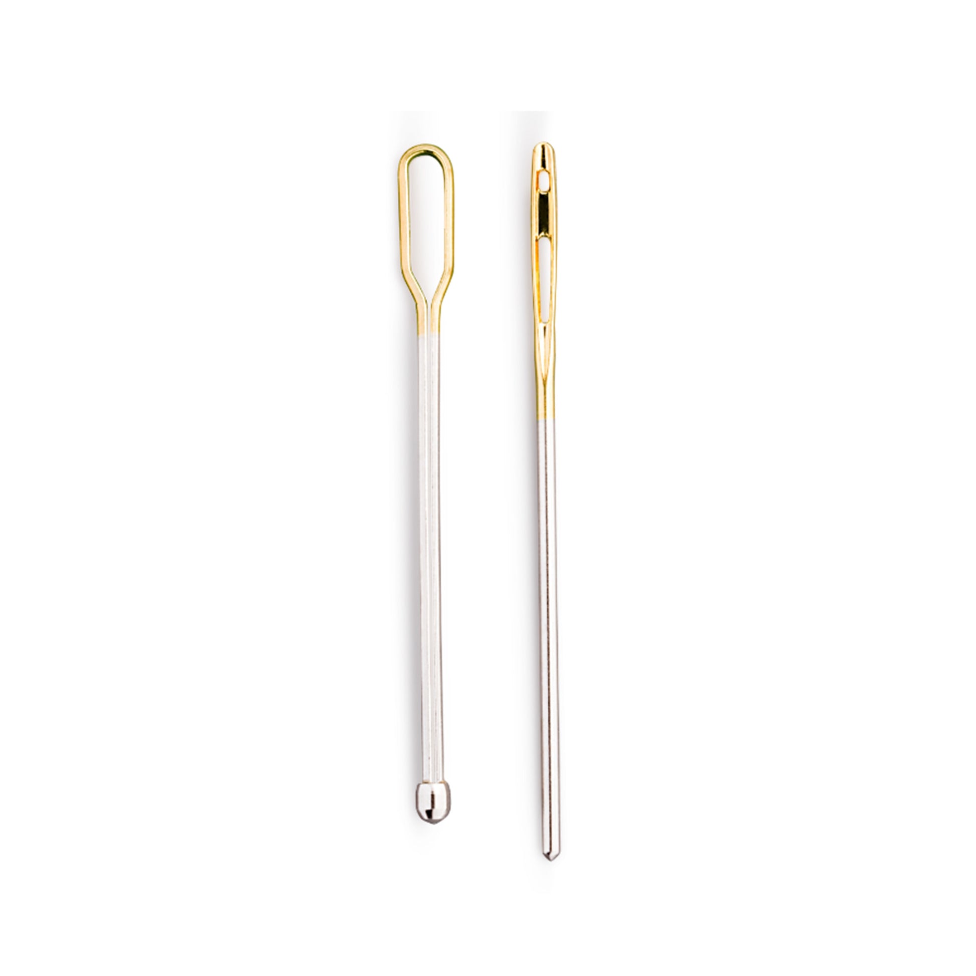 I Prym Bodkins sono aghi perfetti per l'applicazione di nastri elastici e corde attraverso le cinture o altri indumenti. Questo set contiene due estremità smussate. La punta è fatta di acciaio inossidabile e ha un occhiello grande e un occhiello piccolo sia per i filati più spessi e i nastri, che per i filati più fini.