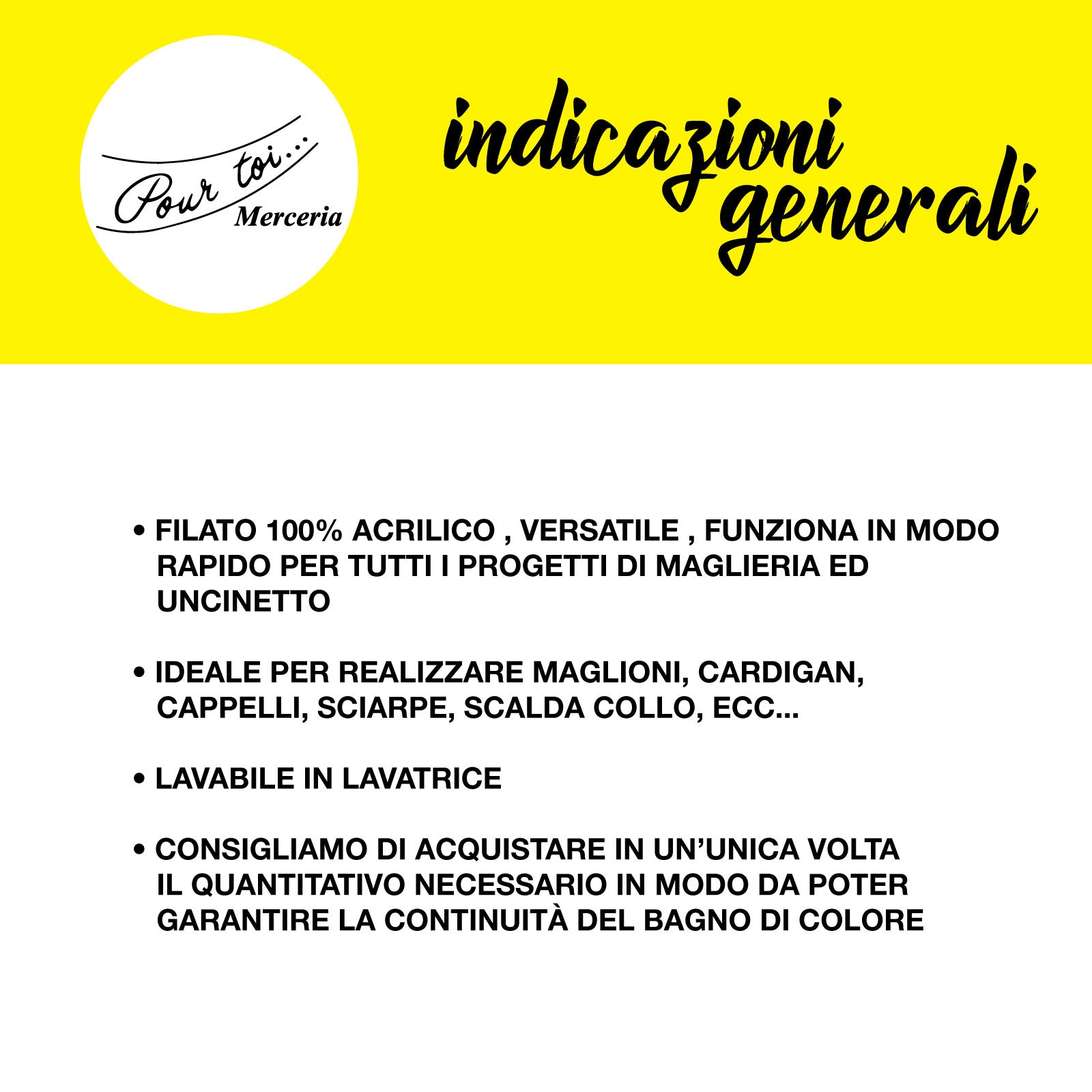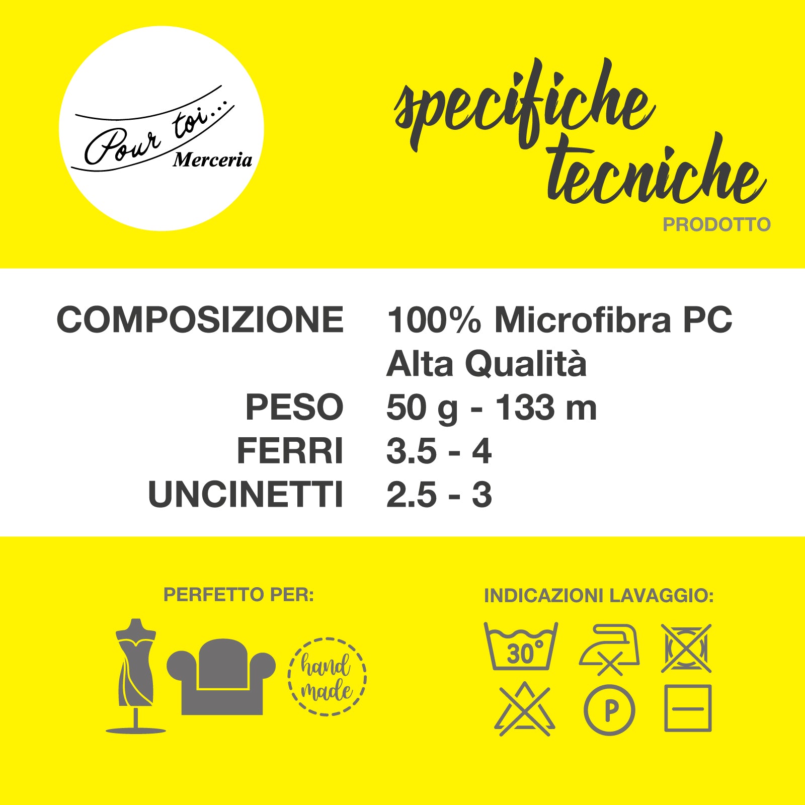 Filato 100% microfibra di alta qualità che garantisce un effetto antipilling mantenendo inalterate le caratteristiche e la morbidezza di questo articolo tanto apprezzato. Ideale per realizzare maglie, felpe e accessori di ogni tipo. Gomitolo da 50 gr, ferri n° 3.5-4 , uncinetto 2.5-3