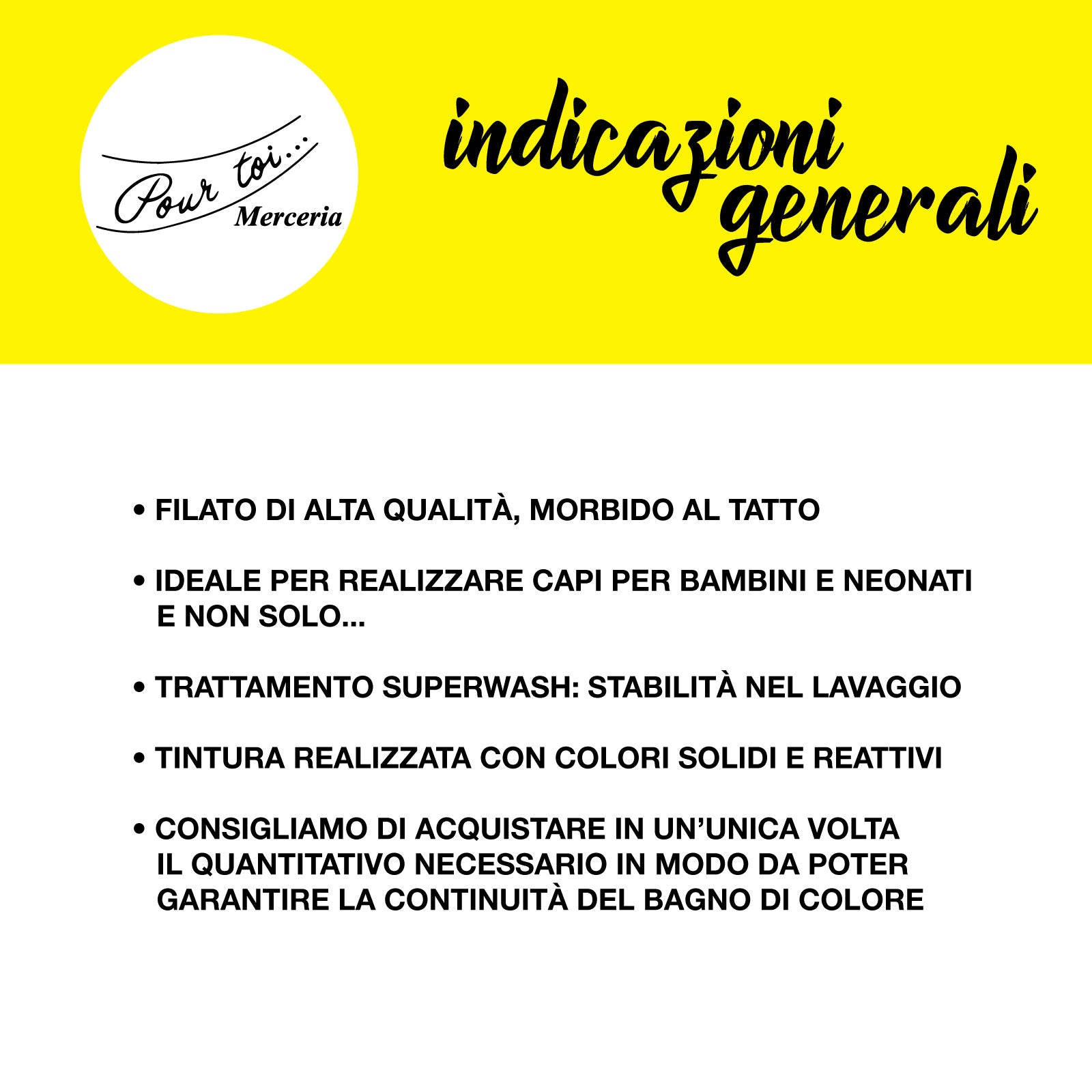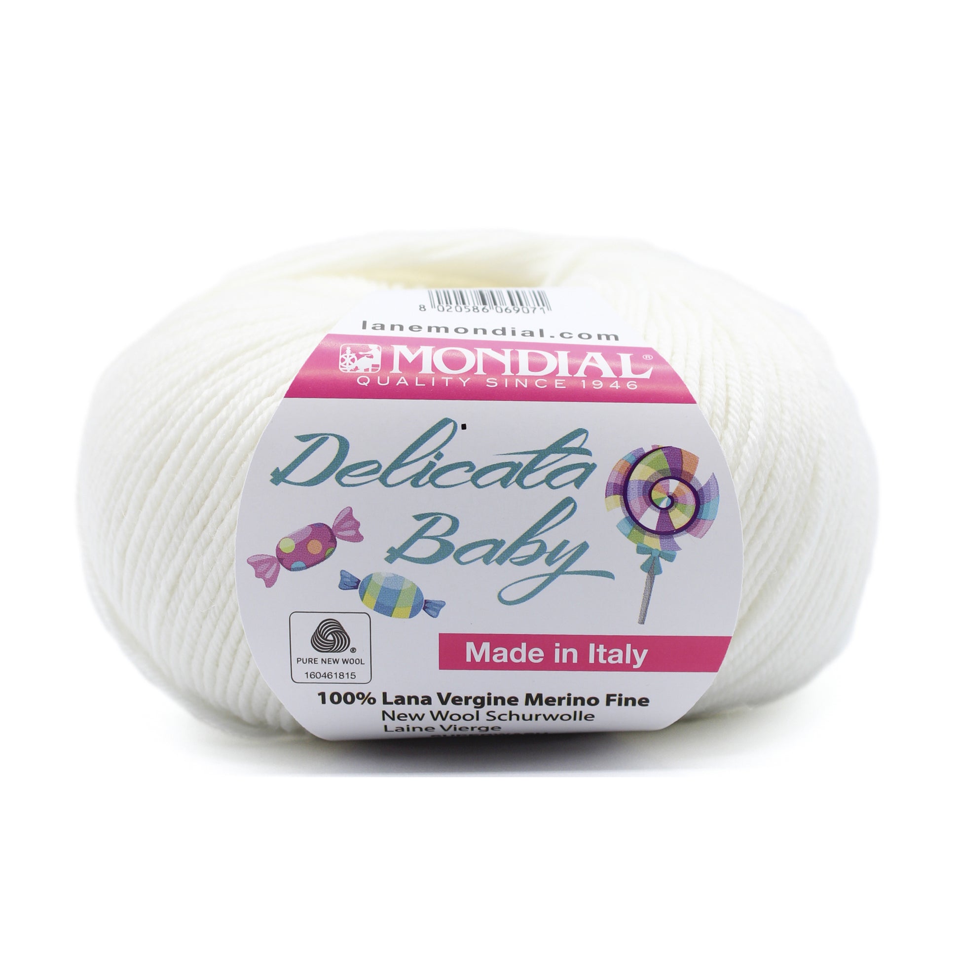 Gomitolo 50gr Lana Mondial Delicata Baby neonato e bambino Lana Vergine Merino Filato di alta qualità dedicato alla produzione di capi per bambini e neonati Alcuni prodotti, seppur aventi etichetta diversa, presentano le stesse caratteristiche descritte nel titolo. Disponibili anche nei seguenti colori: Verde chiaro 26, Rosso 90, Tortora 97, Grigio 98, Bianco 100, Rosa acceso 167, Celeste 303, Glicine 363, Verde Scuro 364, Giallo chiaro 402, Blu scuro 417, Bluette 309, Rosa confetto 837, Azzurro 891. Specifiche prodotto: Composizione: 100% Lana Vergine Merino Superwash Gomitolo da 50 g - 215 m Ferri: 2,5-3 I tempi di spedizione stimati variano dai 2 ai 4 giorni lavorativi.