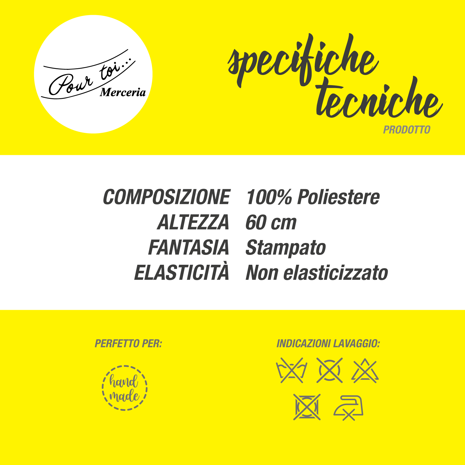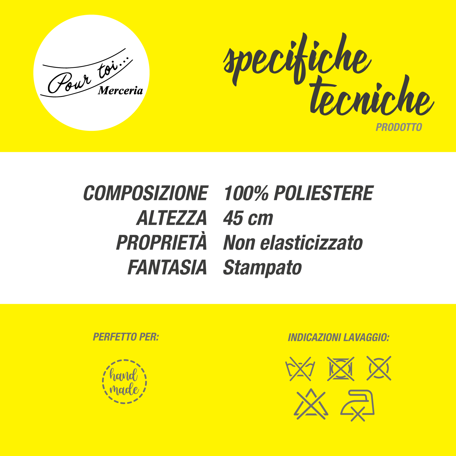 Tessuto stampato e lavabile solo a mano.
