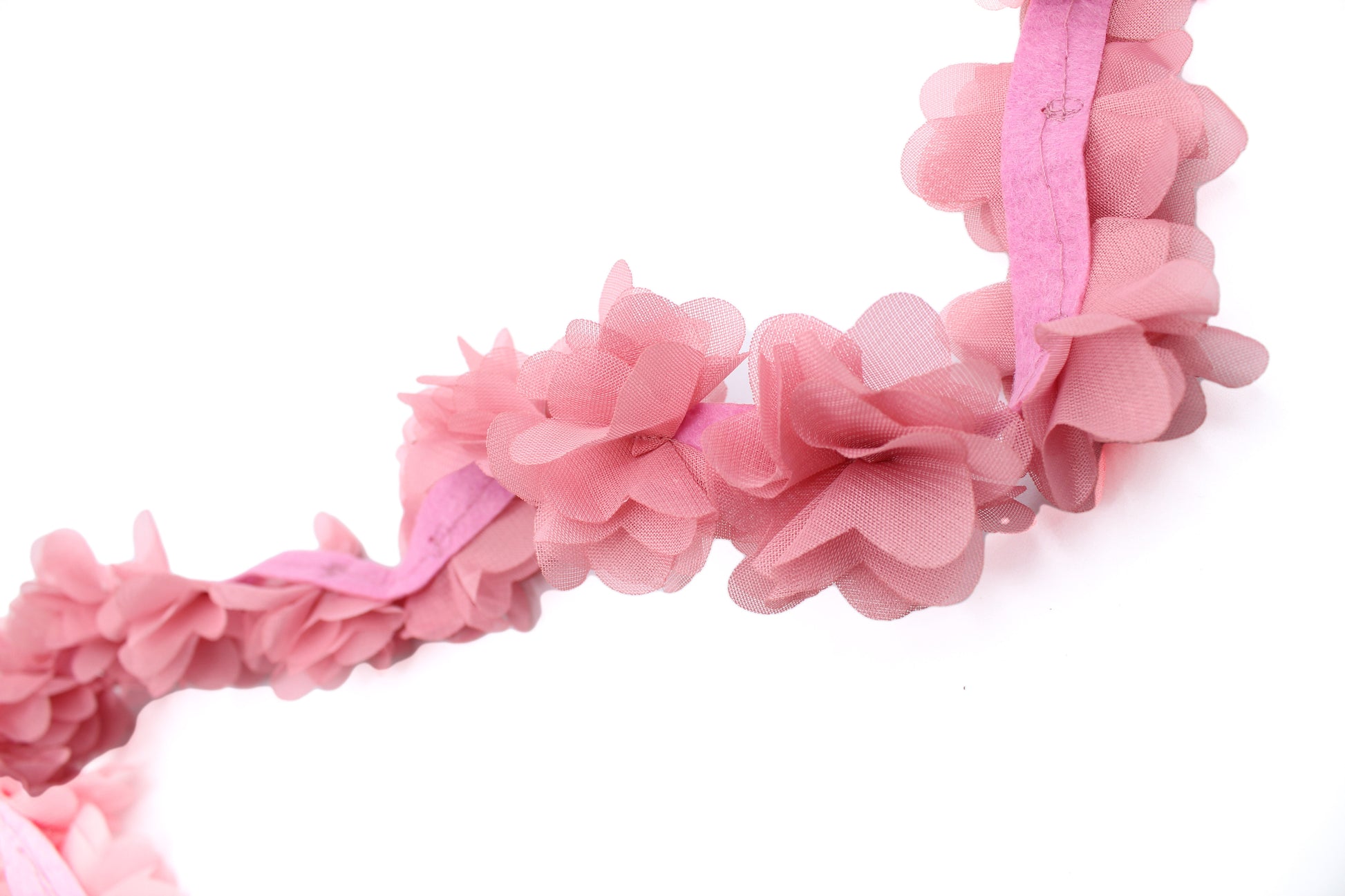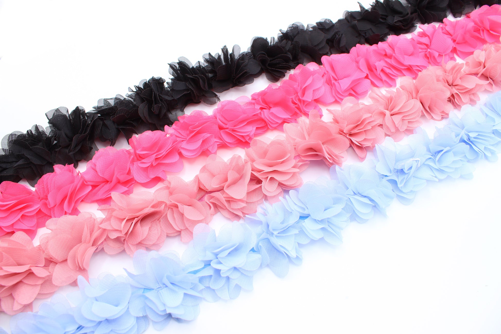 Altezza: 6 cm, Materiale: 80% poliestere, 20% nylon, Design: Fiori cuciti su nastro di georgette, Utilizzo: Perfetta per abbigliamento, scarpe, borse, accessori, Acquisto.