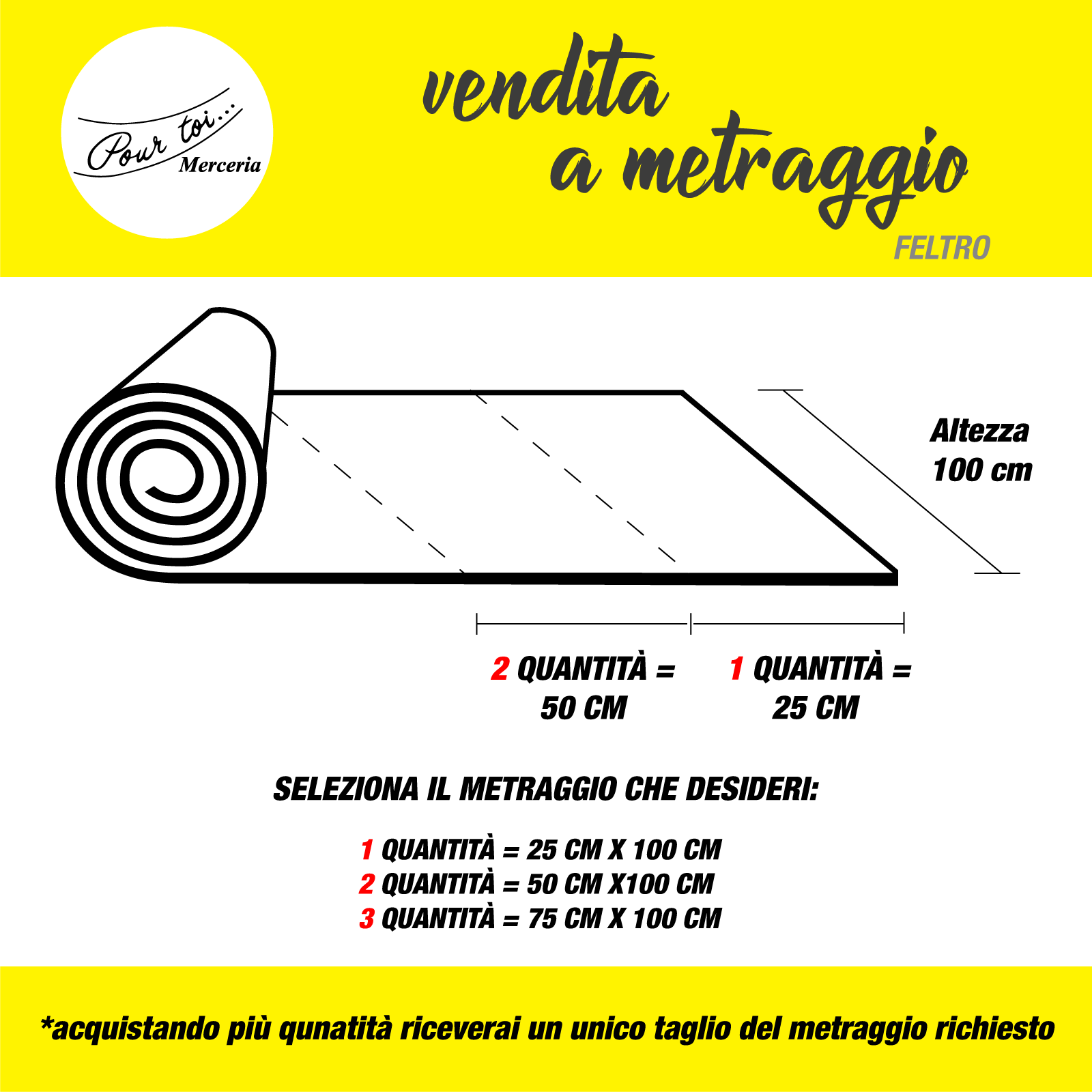 - Per i tagli 25x100 cm, acquistando più quantità il taglio verrà consegnato intero