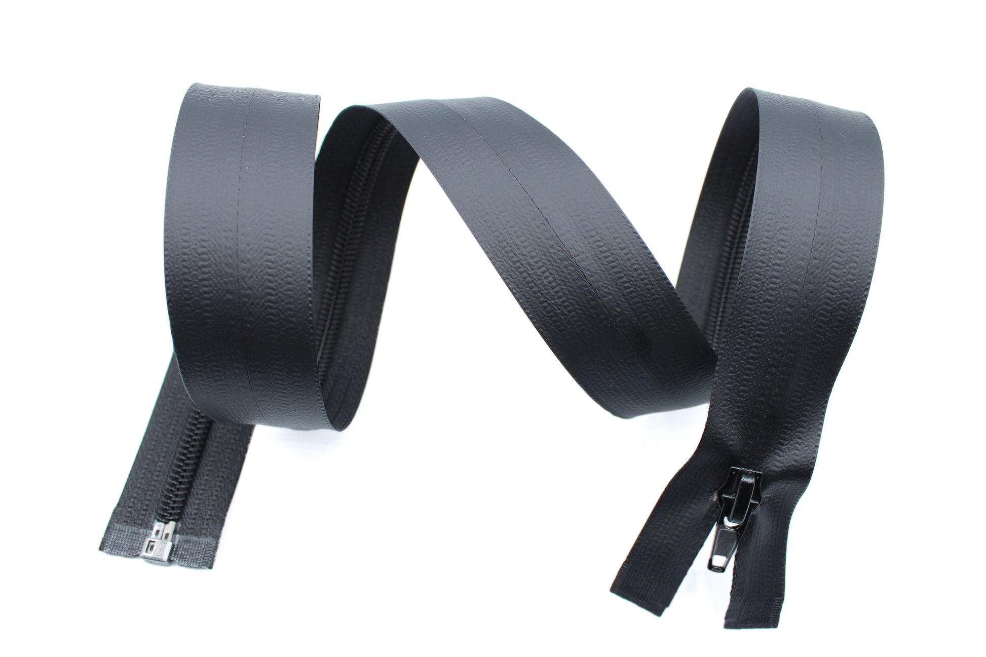 Cerniera lampo idrorepellente, zip divisibile 80 cm, chiusura antivento per giubbotti, zip con due cursori, cerniera tecnica outdoor.